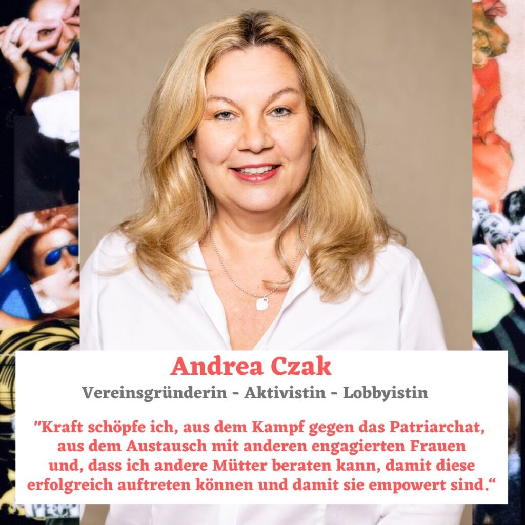 Andrea Czak ist die heutige Interviewpartnerin von Frauenstimmen. Sie setzt sich seit 2017 als Aktivistin für Alleinerzieherinnen ein. 2019 hat sie den feministischen Verein FEMA gegründet. Sie will mit dem Verein ihre eigenen Erfahrungen, mit einem Unterhaltsverfahren das 6 Jahre gedauert hat, anderen Müttern zugänglich machen. Sie unterstützt Alleinerzieherinnen bei deren rechtlichen Angelegenheiten.